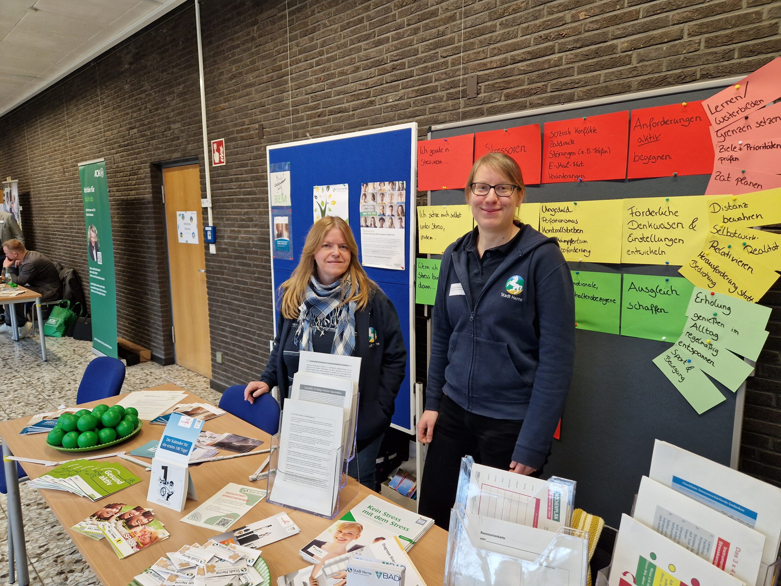 Für alle, die nicht dabei sein konnten: Tolle Rezepte gibt es auch im Rezeptbuch von und für die Mitarbeitenden der Stadt Herne, das die Azubis beim Gesundheitstag gewinnen konnten und das im Intranet auf der Themenseite des Betrieblichen Gesundheitsmanagements digital abrufbar ist. Weitere Angebote finden sich im Intranet, so auch die gesundheitsförderlichen Angeboten der vhs, die von der BGF mit 50 € pro Semester für einen Kurs nach Wahl für alle Mitarbeitenden bezuschusst werden sowie Hinweise zum Kooperationspartner „dermanostic – Hautarzt per App“.