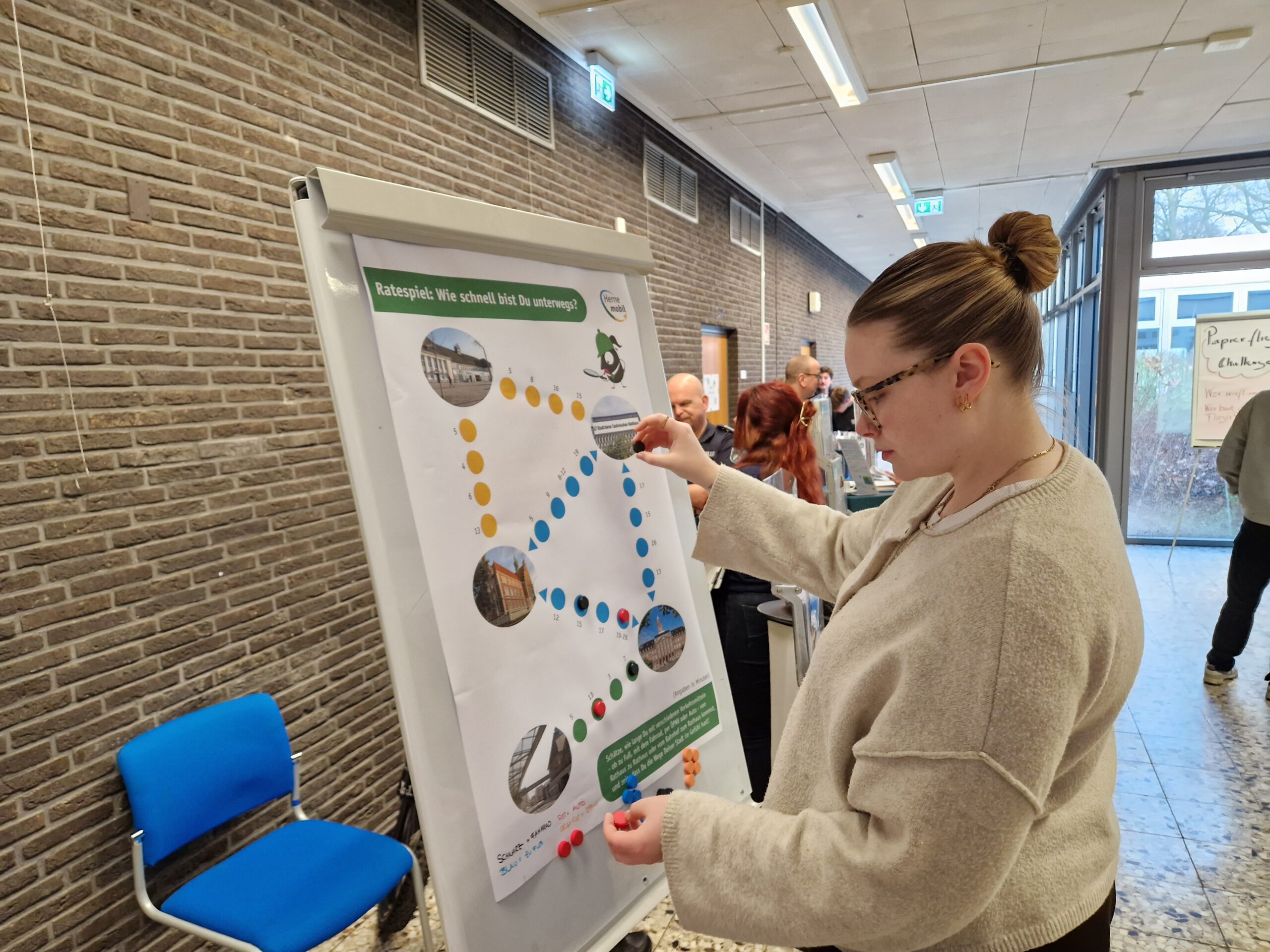 Zu den Teilnehmenden gehörten Alexander Krüger und Luca Amy Randau beide im ersten Ausbildungsjahr der praxisintegrierten Erzieherausbildung. Krüger schätzt die diversen Angebote: „Ein Highlight bisher war die Wand, bei der man seine Geschicklichkeit testen konnte. Papierflieger basteln hat auch schon Spaß gemacht.“ Seine Kollegin Randau ist motiviert in den Tag gestartet: „Ich bin gespannt, was der Gesundheitstag noch alles mit sich bringt.“ Ausprobieren konnte sie bereits wie man gesunde Snacks mit Datteln oder mit Mango zubereiten kann. „Das war sehr lecker, das kann ich sehr empfehlen.“