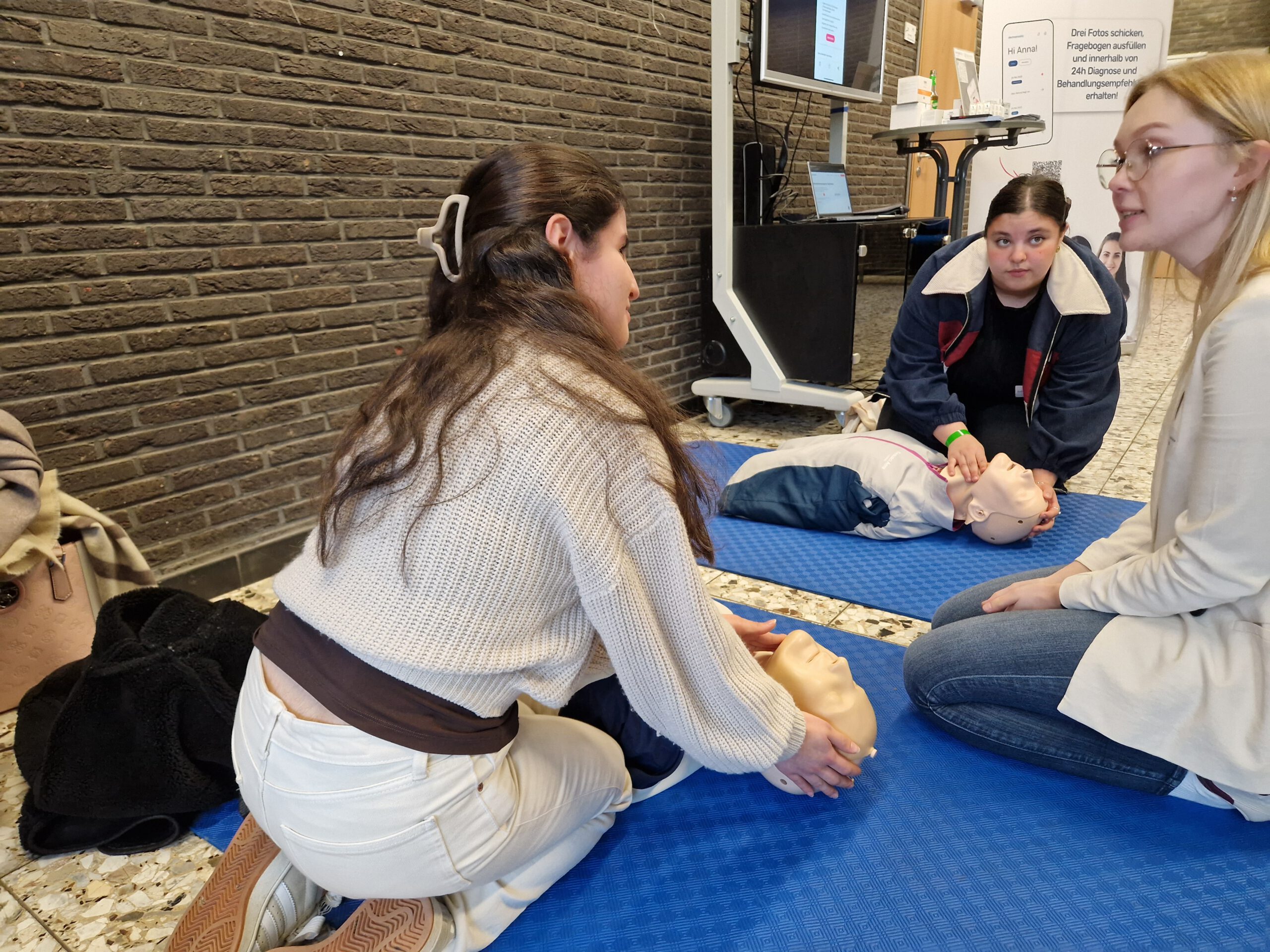 „Neu im Programm sind in diesem Jahr die lebensrettenden Sofortmaßnahmen Prüfen-Rufen-Drücken, die Körperanalysewaage und der Workshop Qigong“, so Julia Frank von der Betrieblichen Gesundheitsförderung (BGF). Sie hatte den Gesundheitstag zusammen mit Ida Veronese und Louisa Hallmann aus dem Team Aus- und Fortbildung sowie Michaela Sielaff, BGF, organisiert und freut sich über das große Interesse der Azubis.